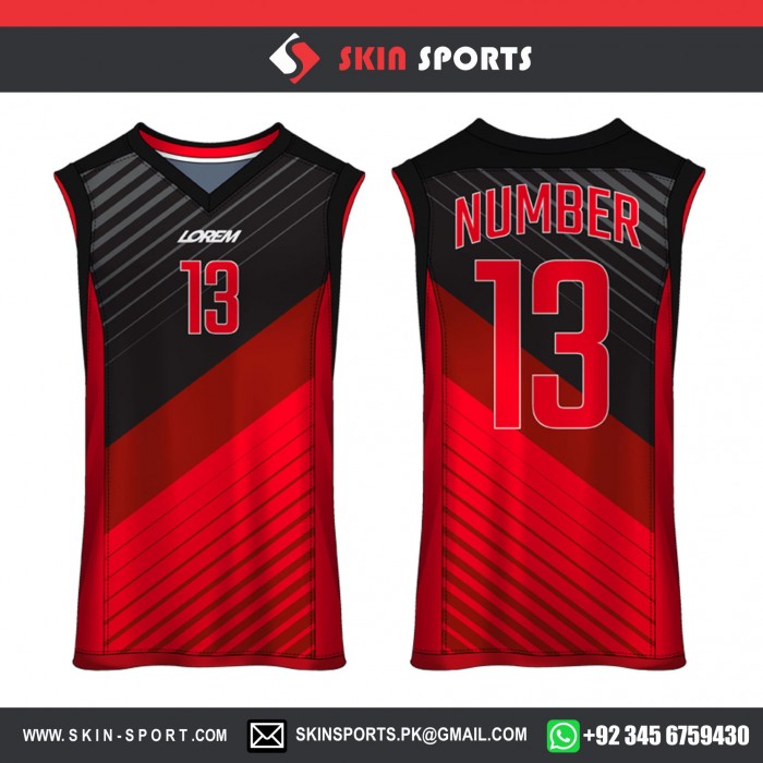 RED BLACK STRIPED BASKETBALL UNIFORMS