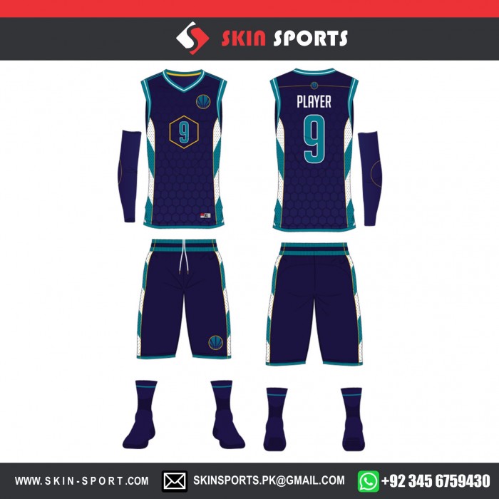 NAVY HONEY COMB FULL SET WITH SLEEVES BASKETBALL UNIFORMS